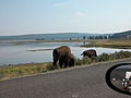 2003-08-18 Yellowstone bison grazing on the side of the road.jpg 2,560 × 1,920; 1.52 MB